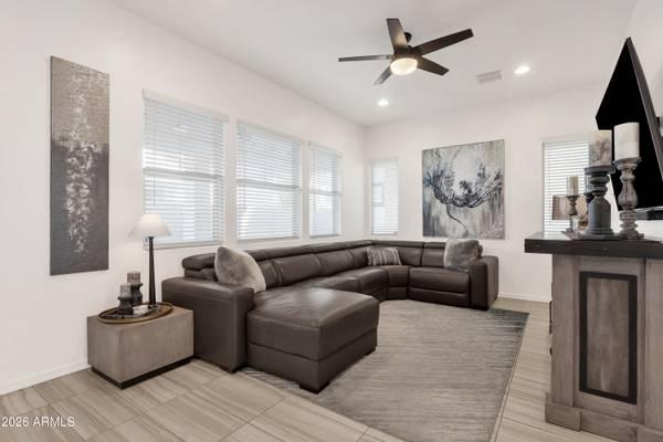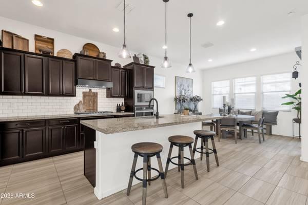 Set in the gated HAVEN community in South Chandler, this home is part of one of Chandler's most distinctive neighborhoods, featuring architecturally diverse homes, modern elevations, and curated streetscapes. This thoughtfully upgraded residence delivers a refined, low-maintenance lifestyle paired with resort-style amenities, including a community pool and fitness center. The functional floor plan offers a dedicated downstairs office providing ideal flexibility for remote work. Recent improvements include fresh interior paint, Restoration Hardware lighting and bath fixtures, upgraded cabinet hardware, new microwave/kitchen faucet, custom closet system, and an enhanced laundry room with cabinetry, sink, and new lighting. Additional upgrades include interior/exterior lighting and added window coverings create a truly move-in-ready home. Outdoors, enjoy synthetic turf with a putting green and a spacious covered patio, ideal for relaxing or entertaining year-round. Conveniently located near the upcoming Costco, commuter-friendly freeway access, and just minutes from dining, shopping, and highly-rated healthcare, this home offers an exceptional balance of style, functionality, and location.